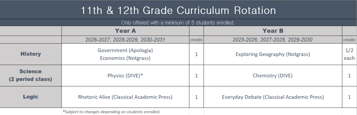 The Wellspring high school, or rhetoric, program walks alongside students as they prepare for the next steps of life. Now in our 8th year, we've been blessed with qualified teachers, a close-knit Christian community, and a comprehensive course list. Our goal is to guide students to communicate clearly, love truth, and step into adulthood ready to serve God and others with joy.